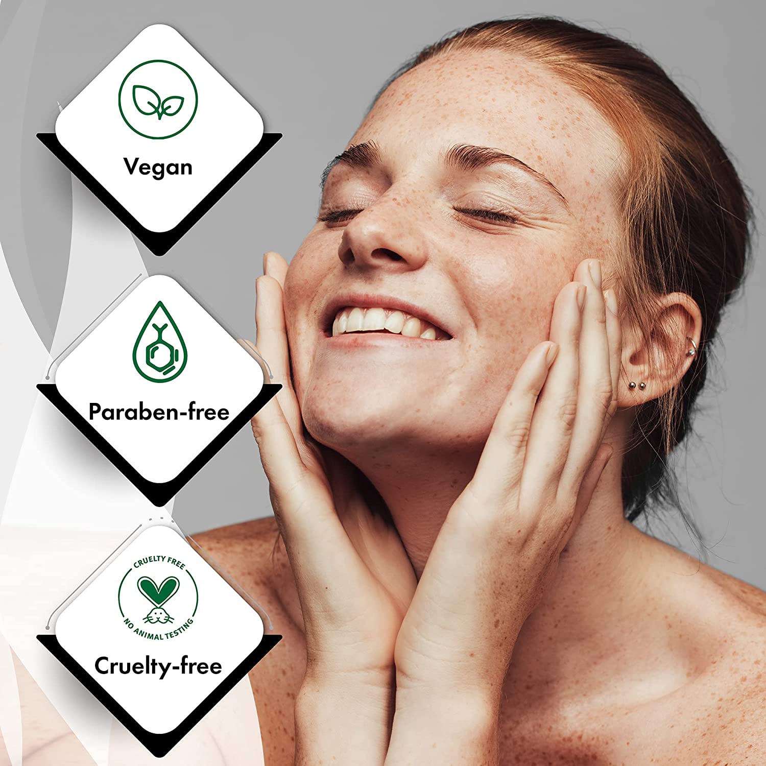 Cruelty-free means we never test our products on animals. We believe women can have beautiful skin without having to subject innocent animals to laboratory testing.